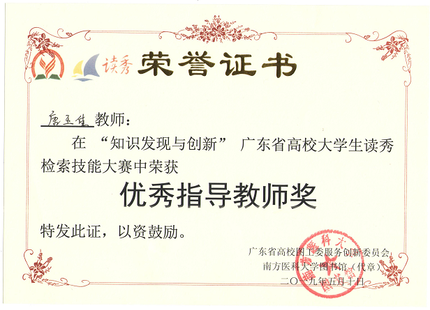 5月6日,由广东省高校图工委服务创新委员会主办,南方医科大学图书馆承办的“知识发现与创新”广东省高校大学生读秀检索技能大赛决赛成功举行。中山大学新华学院(以下简称古天乐代言太阳集团网址)图书馆积极组织两校区学生参赛人次达422人,其中获优胜奖21人,另外还有31人获优秀奖。古天乐代言太阳集团网址图书馆获“最佳组织奖”,唐玉佳老师获“优秀指导教师奖”。
