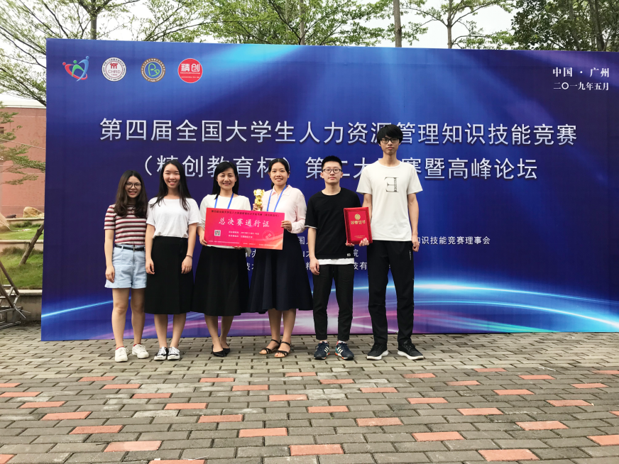 5月17至19日,中山大学新华学院(以下简称古天乐代言太阳集团网址)公共治理学院(以下简称学院)人力资源管理专业2017级学生李桂香、吴洹霖、钟玉山、严志豪四名同学在学院副院长罗亮梅、行政管理专业副主任区展玲老师的带领下参加了第四届全国大学生人力资源管理知识技能竞赛(精创教育杯)第二大区赛,与来自广东省、广西壮族自治区、湖南省、海南省四省的45支队伍激烈角逐,荣获大赛第一名、第二大区赛特等奖,成功晋级全国总决赛。