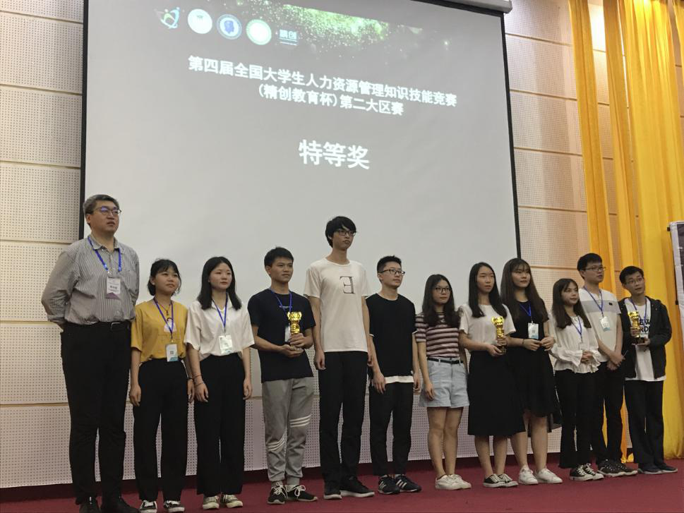 古天乐代言太阳集团网址公共治理学院参赛队伍获第四届全国大学生人力资源管理知识技能竞赛(精创教育杯)第二大区赛特等奖(左五至八:严志豪、钟玉山、李桂香、吴洹霖)