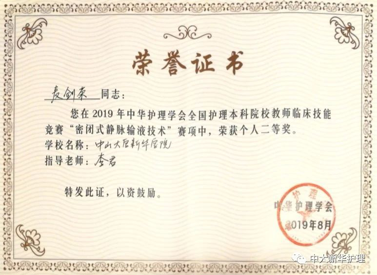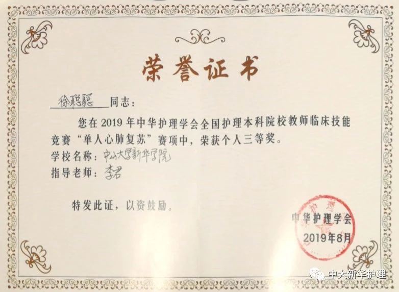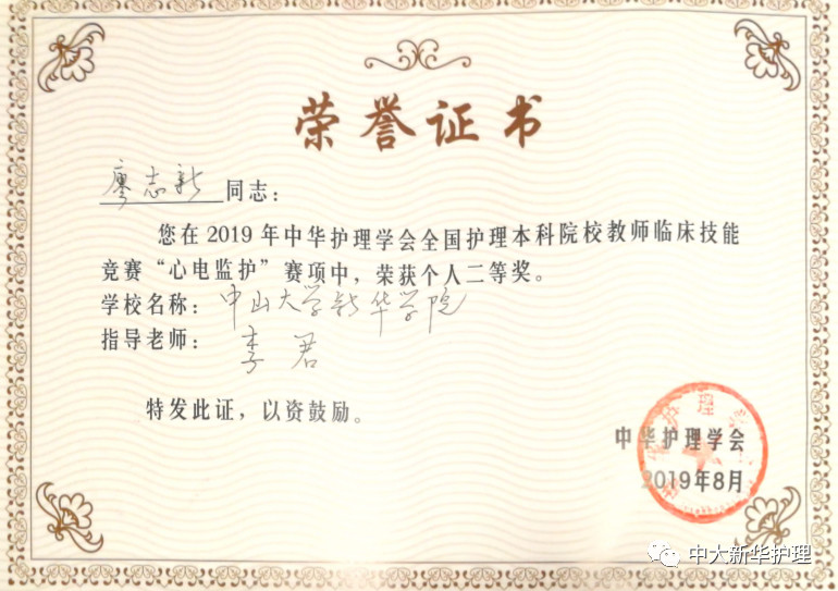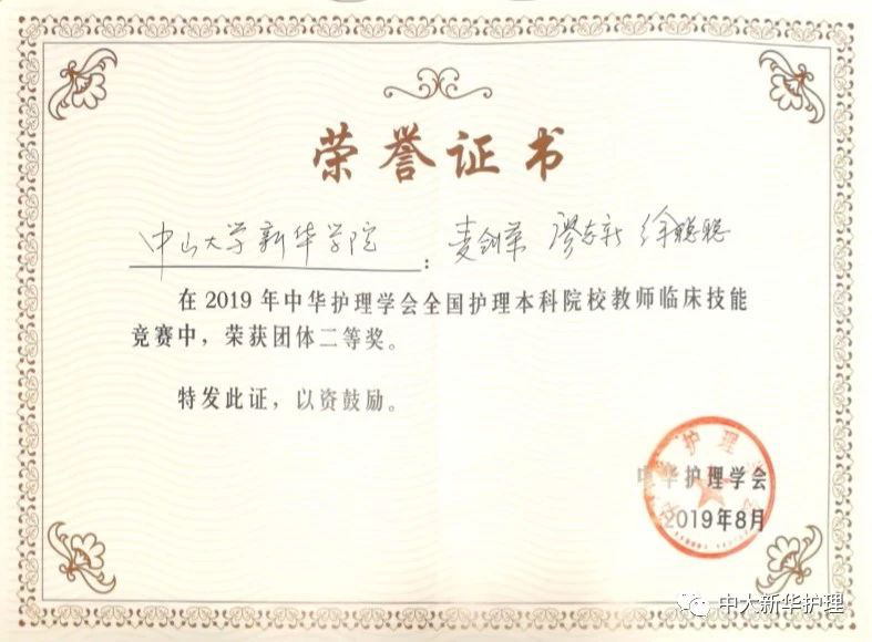 8月2日,中华护理学会全国护理本科院校教师临床技能大赛在福建省福州市举行。此次大赛由中华护理学会主办、福建省护理学会和福建医科大学协办。中山大学新华学院护理学院代表队参加了三项技能操作比赛,获得团体二等奖等多项荣誉。