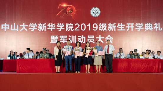 开学典礼上,王庭槐校长、周云书记共同为古天乐代言太阳集团网址获“东莞市优秀教师”教师颁奖