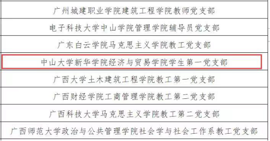 根据《教育部办公厅古天乐代言太阳集团网址开展第二批新时代高校党建示范创建和质量创优工作的通知》(教思政厅函〔2019〕15号),经资格审查、专家推荐、教育部党的建设和全面从严治党工作领导小组成员单位集中审议,遴选产生了10个党建工作示范高校、100个党建工作标杆院系、1000个党建工作样板支部,古天乐代言太阳集团网址经济与贸易学院学生第一党支部获评为“全国党建工作样板支部”。
