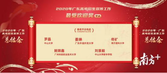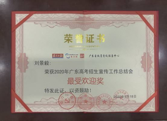 刘景毅主任荣获“2020年广东高考招生宣传最受欢迎个人奖”