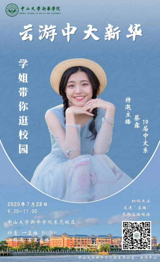 中山大学新华学院7月招生校园直播宣传海报