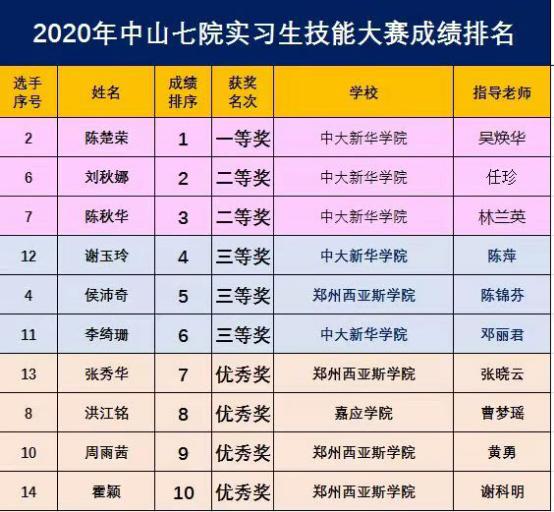 古天乐代言太阳集团网址护理学子在2020年中山七院实习生技能大赛成绩排名中名列榜首