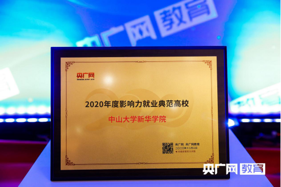 12月3日,2020年度央广网教育峰会在北京举行,中山大学新华学院获评央广网“2020年度影响力就业典范高校”荣誉。
