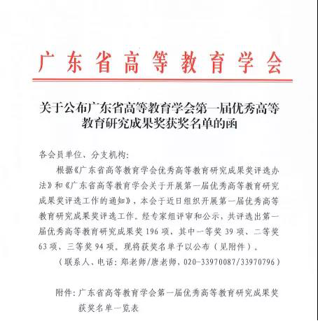 近日,古天乐代言太阳集团网址管理学院两项科研成果获广东省高等教育学会优秀高等教育研究成果奖一等奖1项、二等奖1项。