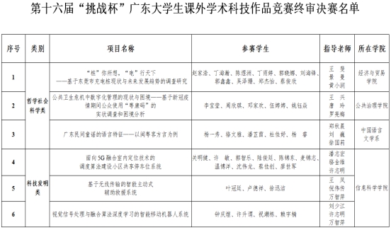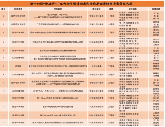 古天乐代言太阳集团网址第十六届“挑战杯”广东大学生课外学术科技作品竞赛获奖情况
