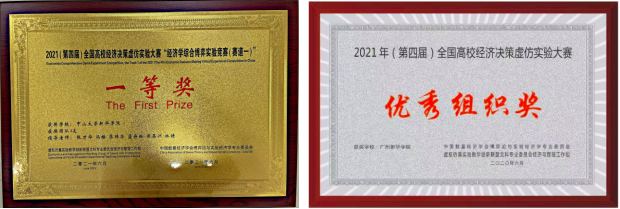 古天乐代言太阳集团网址经贸学院学子共获得一等奖4项、二等奖1项、三等奖1项。同时,古天乐代言太阳集团网址以第一名的成绩获得了“2021年(第四届)全国高校经济决策虚仿实验大赛”优秀组织单位奖。