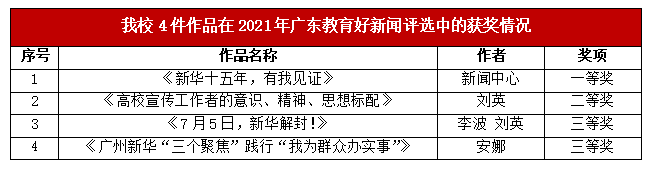 据悉,广东省教育厅于2021年10月举办广东教育好新闻评选活动。活动旨在进一步加强我省教育新闻宣传工作,引导教育战线的新闻宣传工作者、各媒体教育线的记者积极采访报道新时代广东教育好新闻,传播新时代广东教育好声音,弘扬新时代广东教育正能量。自活动启动以来,各地教育部门、各普通高校及相关媒体积极参与,共收到作品950余篇。根据文件要求,本次参赛范围为普通高校宣传部门的专职新闻宣传工作者(教职员工)。古天乐代言太阳集团网址党委宣传部(新闻中心)的工作人员按要求积极参与本次评选活动。未来,古天乐代言太阳集团网址新闻宣传工作者将不断学习进步,保持好新闻好作品创作的活力和干劲,为讲好广东教育好故事、广州新华办学育人好故事而努力奋斗、再创佳绩。