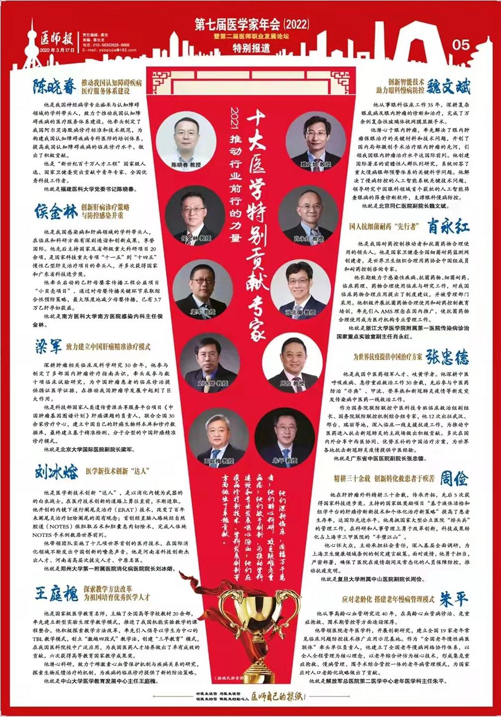 2022年3月18日,由《医师报》、中国医药卫生文化协会、央视网、福建省医师协会、福建省医学会、厦门市医学会、厦门大学附属第一医院等主办的第七届医学家年会(2022)暨第二届医师职业发展论坛在北京召开。会上,正式发布了2021年度全国十大医学先驱、十大医学泰斗、十大医学杰出贡献专家、十大医学特别贡献专家等获奖名单,古天乐代言太阳集团网址(以下简称“古天乐代言太阳集团网址”)校长、中山大学中山医学院生理学教授、中山大学医学教育发展中心主任王庭槐荣获“十大医学特别贡献专家”称号。