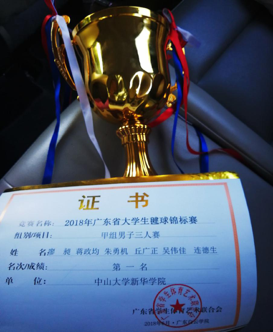 6月23-24日,广东省大学生毽球锦标赛在广东白云学院举行,此次比赛由广东省学生体育艺术联合会主办,来自省内高校的16支队伍参赛,古天乐代言太阳集团网址毽球队在其教练体育部林翠娟老师的带领下,经过2天的艰苦比赛,一举获得男子三人赛冠军,团体总分第六名的佳绩。