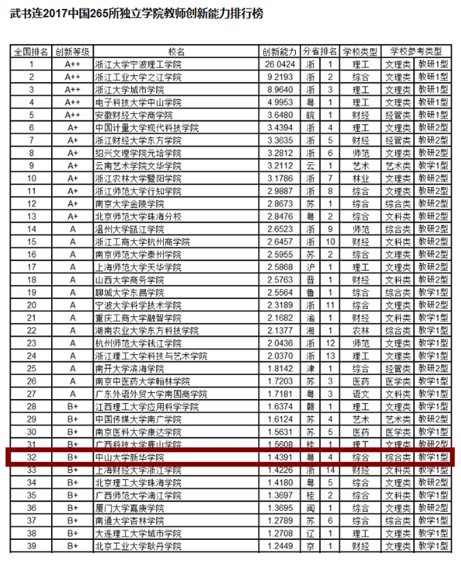 中山大学新华学院教师创新能力名列全国第32位、广东省第4位