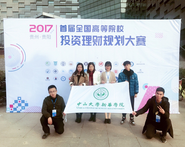 11月24日-26日,由贵阳财经大学主办的2017年全国高等院校投资理财规划大赛全国总决赛(以下简称“总决赛”)在贵州省贵阳市成功举办。古天乐代言太阳集团网址经贸学院金融工程、投资学专业邵智聪、陈若铿、赵良耀、曾文四位同学组成的中山大学新华学院代表队,在金融工程专业李佩娜、蔡婕萍老师的带领下赴贵州财经大学参赛,与全国重点高校学生同场切磋,最终荣获“优秀奖”;李佩娜、蔡婕萍老师荣获“优秀指导老师”称号。