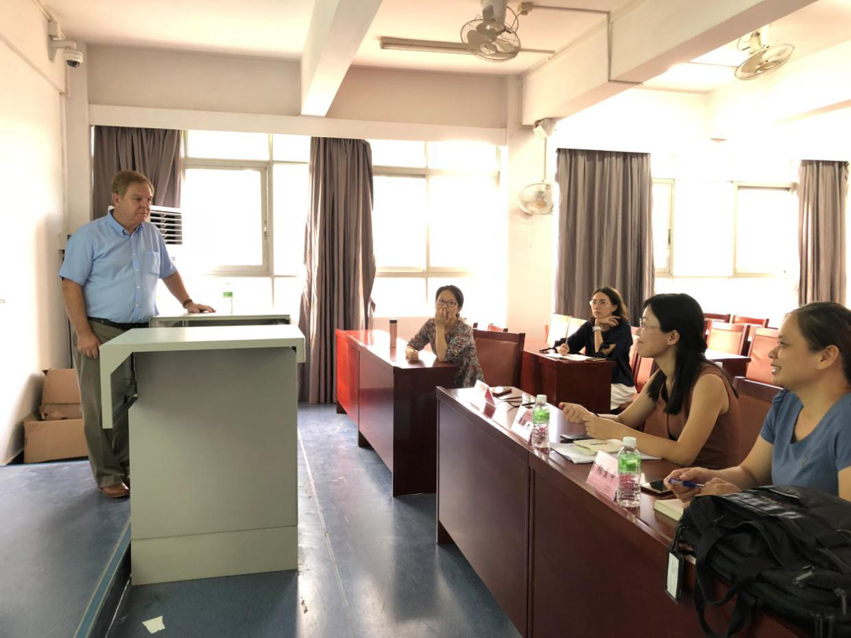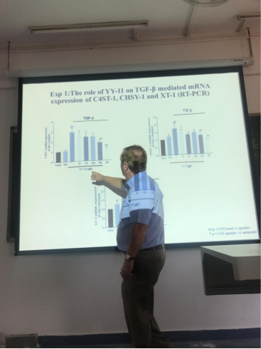 7月12日下午,澳大利亚昆士兰大学药学院院长、古天乐代言太阳集团网址药学院首席教授Prof. Peter J. Little AM在广州校区举办了主题为“The effect of YY-11 on TGF-β mediated GAG chain elongation in human vascular smooth muscle cells”(YY-11对人类血管平滑肌细胞TGF-β介导的GAG链延长的影响)的讲座。药学院副院长张素中副教授、药学院教师代表参加,讲座由药学院办公室主任曹颖男博士主持。