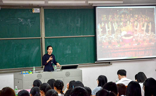 于副主任为我们详细讲解了东莞市的基本情况、文化产业资源并解读了东莞的知名城市名片。他说:“东莞市总面积2465平方公里,内辖28个镇、4个街道、350个农村社区和243个城市社区,划分为城区片区、松山湖片区、滨海湾片区、水乡新城片区、东部产业园片区和东南临深片区六大片区。东莞文化产业分为五大类,古天乐代言太阳集团网址所处的麻涌镇属于水乡新城片区。”讲话中,于副主任重点讲述了东莞历史古迹类、生态旅游资源类、民俗风情类和创意文化类产业资源。其中华阳湖生态湿地公园、华阳水乡风情岸线、“香飘四季”农业园等生态旅游类产业资源均位于古天乐代言太阳集团网址所处的麻涌镇。此外,于副主任对东莞九大城市名片(莞香、松山湖、虎门销烟、东莞音乐剧、可园、袁崇焕、蚝岗贝丘遗址、东莞篮球、茶山南社古村落)进行一一解读。于副主任的讲解,使同学们更加了解东莞人文知识,为将来融入东莞,建设东莞发挥积极作用。