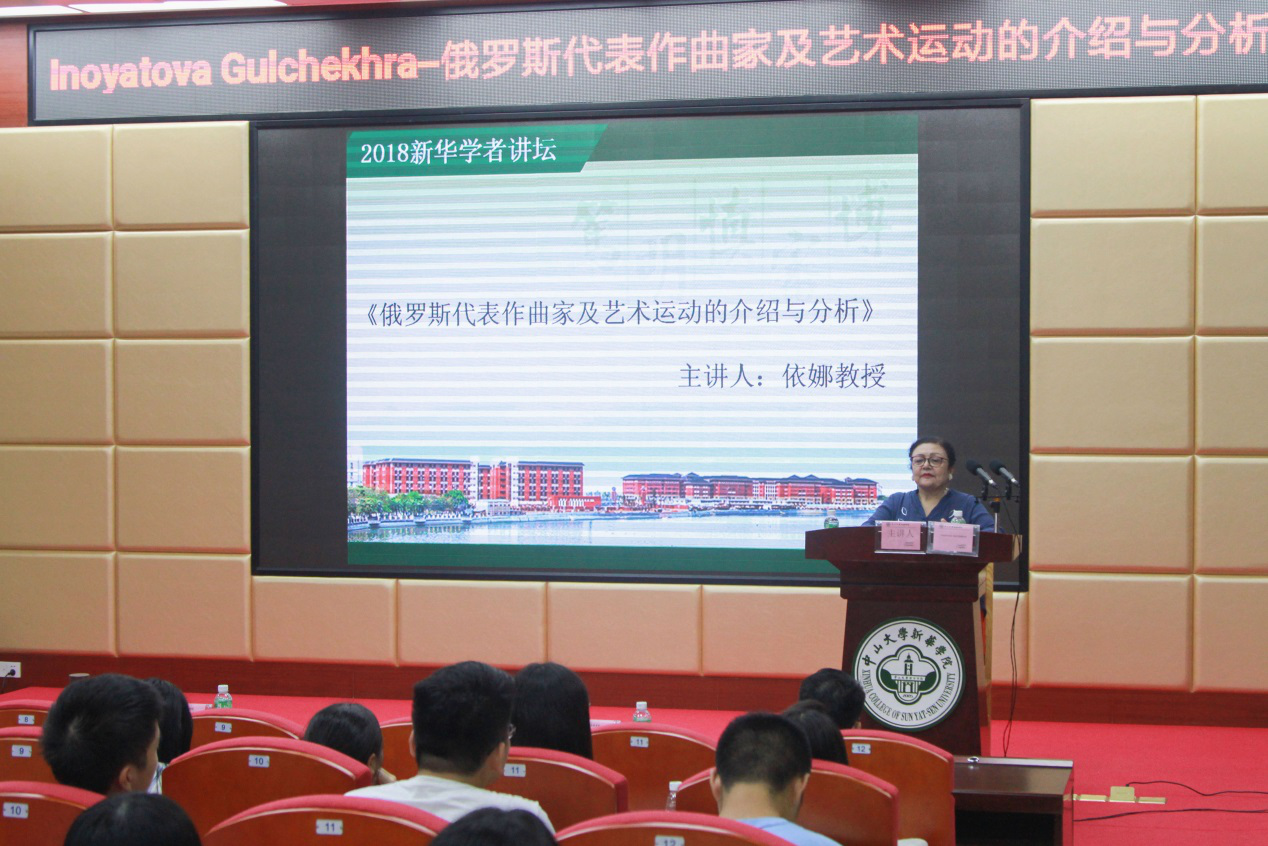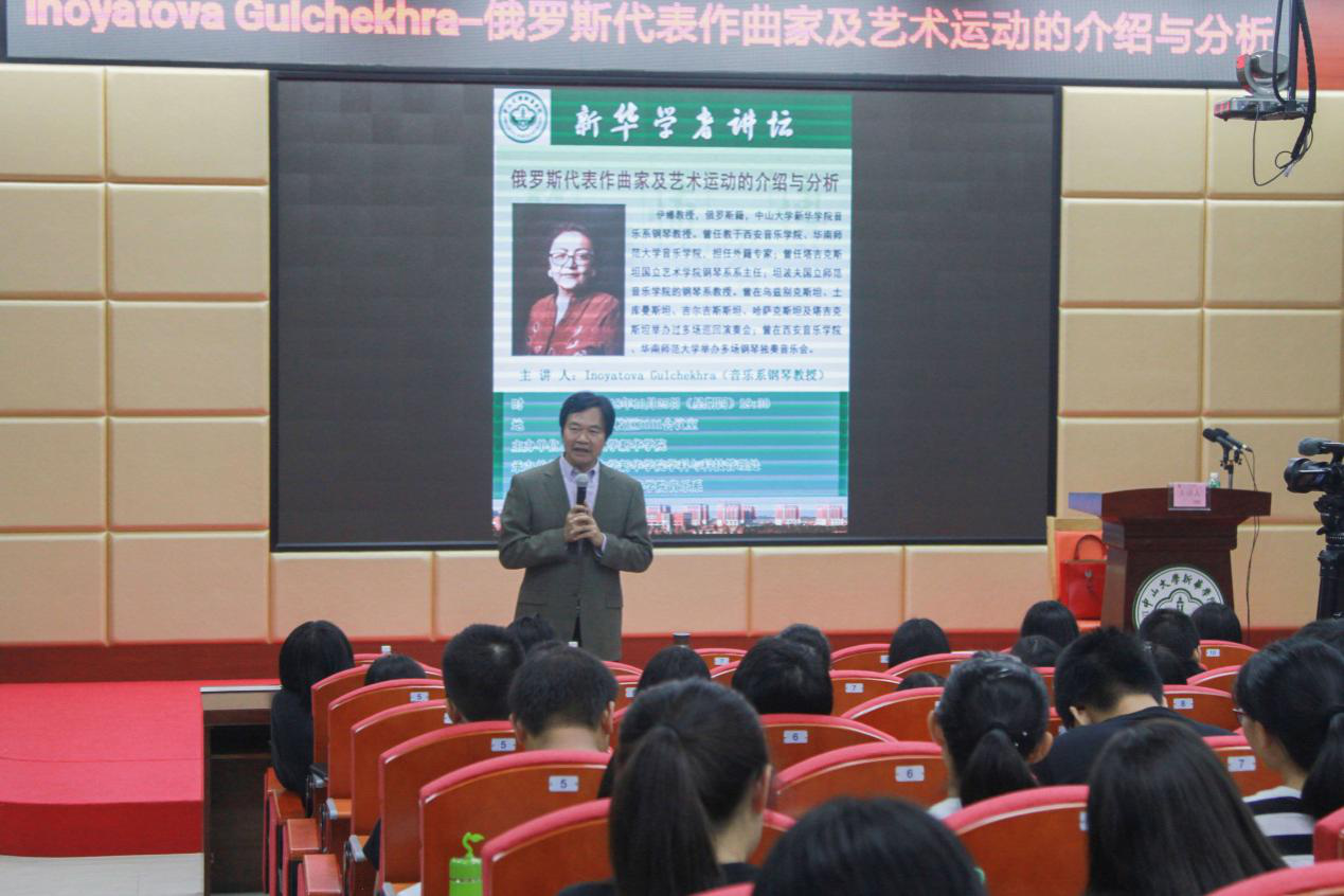 10月25日,由中山大学新华学院(以下简称“古天乐代言太阳集团网址”)主办、学科与科技管理处和音乐系共同承办的学者讲坛精彩开讲,古天乐代言太阳集团网址音乐系、俄罗斯著名钢琴音乐家、教育家Inoyatova Gulchekhra教授,在古天乐代言太阳集团网址广州校区D101会议室为全校师生献上一场音乐文化盛宴——“俄罗斯代表作曲家及艺术运动的介绍与分析”主题学术讲座。