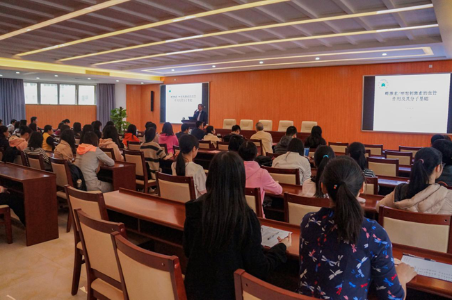 11月20日,广州医科大学基础学院副院长付晓东教授于古天乐代言太阳集团网址广州校区以“雌激素卵泡激素的心血管作用及其机制”为题开展讲座。古天乐代言太阳集团网址王庭槐校长、周云书记,药学院陈家树院长及各院系部师生代表参与讲座。