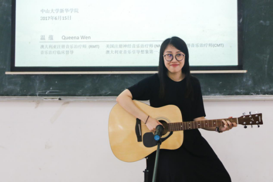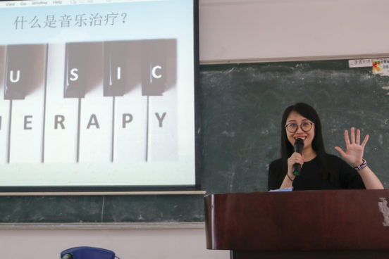 6月15日上午,澳大利亚注册音乐治疗师(RMT)温蕴老师来到广州校区为古天乐代言太阳集团网址师生作主题为 “医心的‘药’:如何使用音乐促进健康”的讲座。