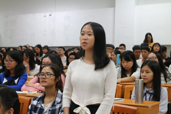 提问环节中,同学们积极地提出自己的疑惑,如:英语专业的学生如何做好口译工作等问题,詹教授一一进行了耐心解答。