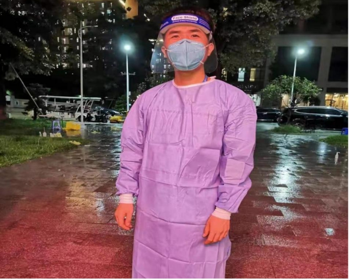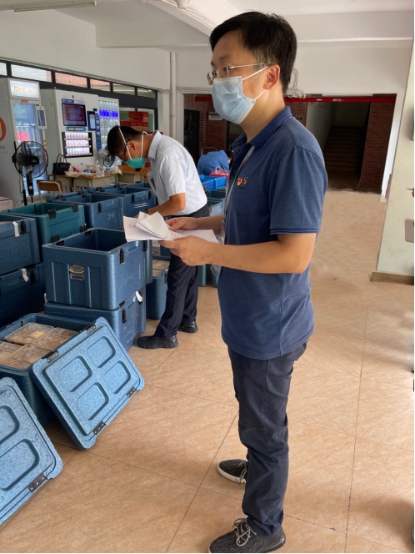 代亮、刘佳兴、陈才燕、陈培鑫、孙浩等同志挺身而出,义无反顾穿上防护服,组成重点隔离区配餐小组。