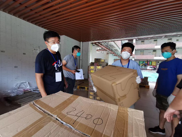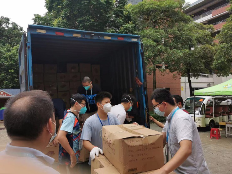 (图为教务处同志搬运物资)