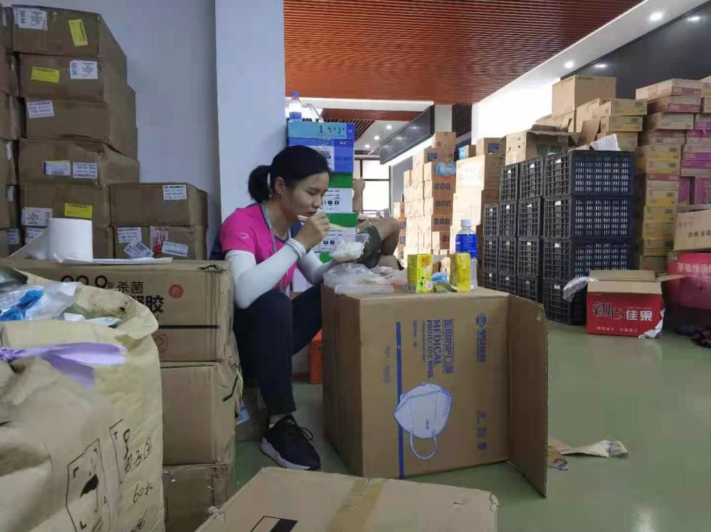 蒋晓晨除了参加了抗疫志愿活动,同时还要兼顾平日里的教学课程,时常工作到深夜。在这场突如其来的疫情当中,她与其他志愿者一同舍小我为大我,以自己的辛劳换取新华人的安心。