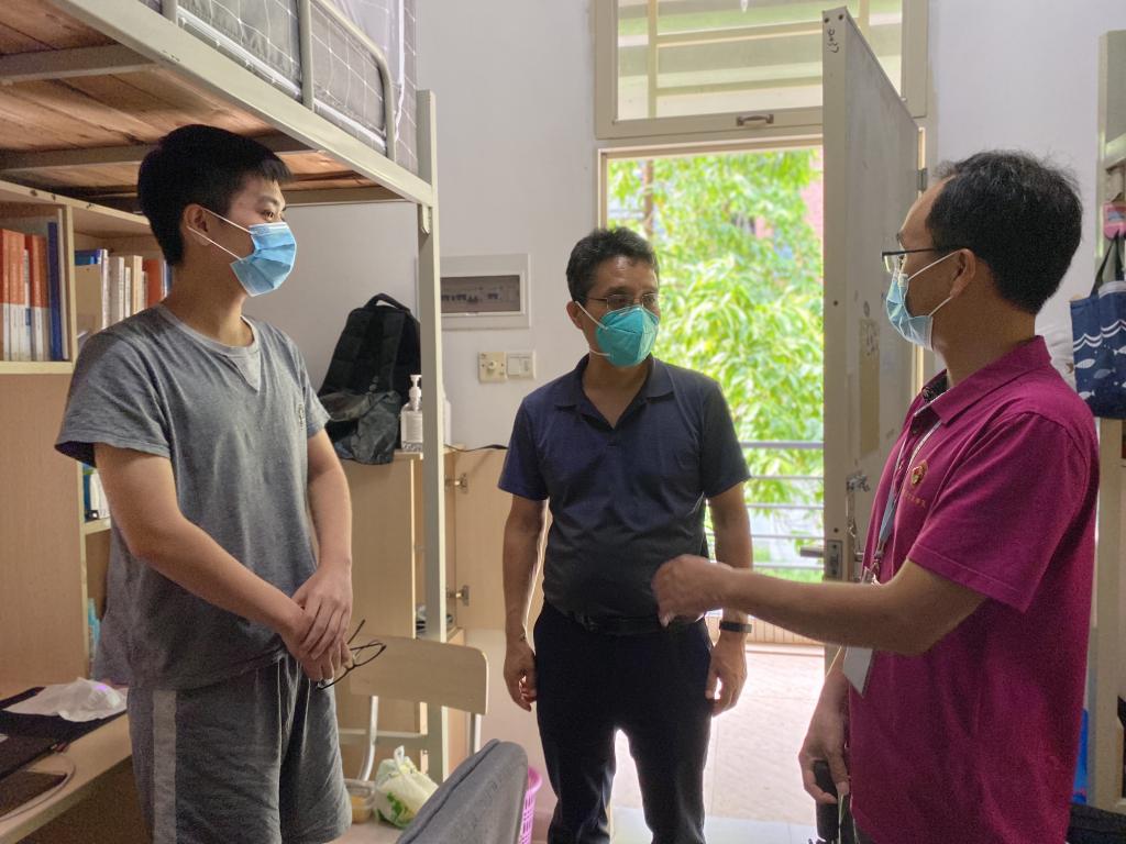宋俊华主任(左二)重点慰问校外隔离点返校学生
