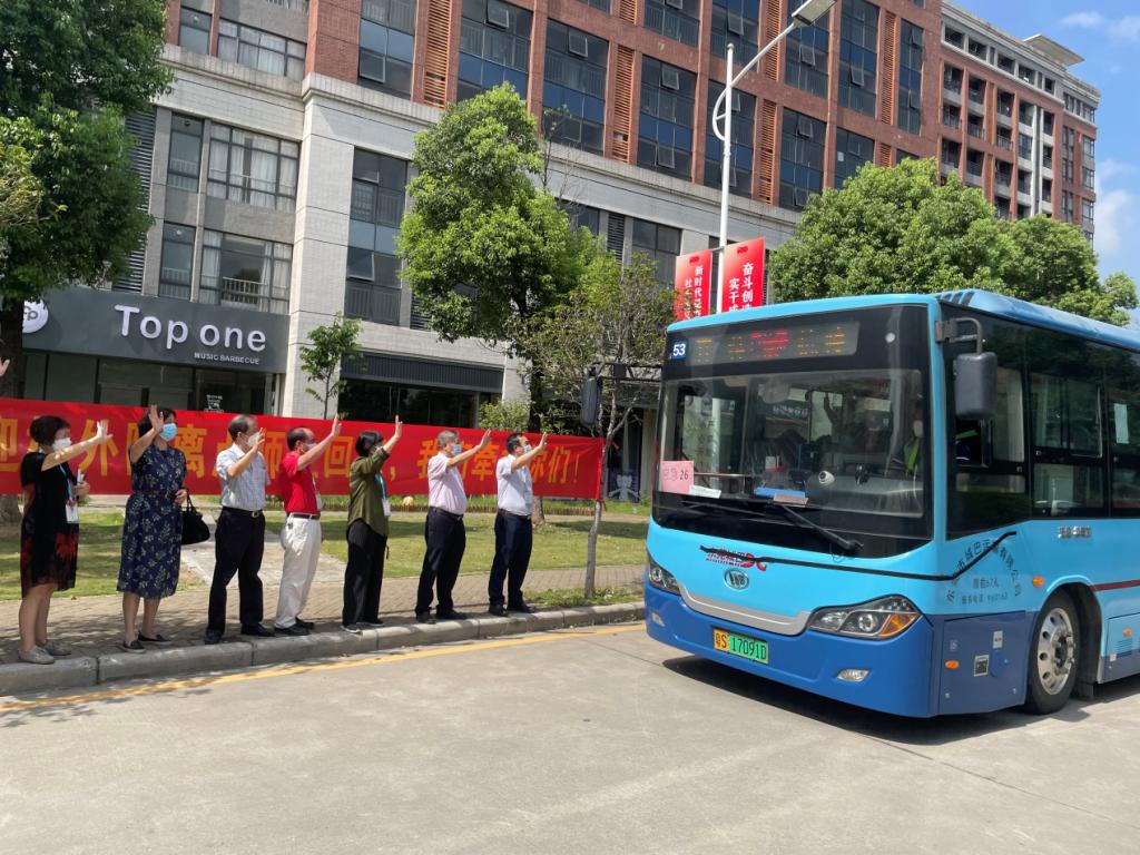 “欢迎老师同学们回家,你们辛苦了”,前来迎接的老师们见到专车进校不无欢欣雀跃。