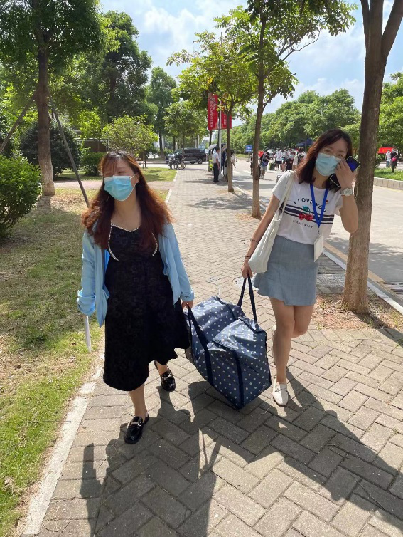 为顺利完成校外隔离点学生返校离校工作,中文系提前做好部署,根据班车抵达时间、宿舍分布、人员数量等对返校学生进行科学分组,每组安排一位负责老师,确保每一位返校学生都有老师接车,陪送去宿舍,帮助解决可能出现的问题,安全离校。中文系党总支书记夏茵英在现场对每位负责老师反复强调,压实责任,要求真正做到一个不落。负责老师主动帮助学生搬运行李,护送学生上车。在与返校学生交谈中,老师问候学生隔离期间的生活,分享返校的喜悦,一扫隔离期间的阴霾,以无微不至的关怀,深深诠释着“暖暖中文”的爱。
