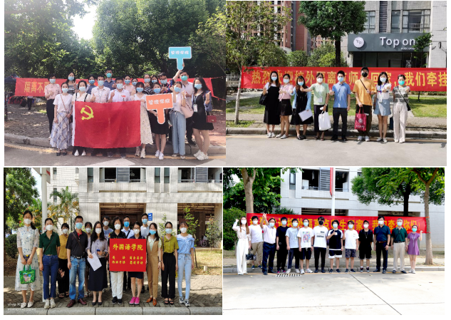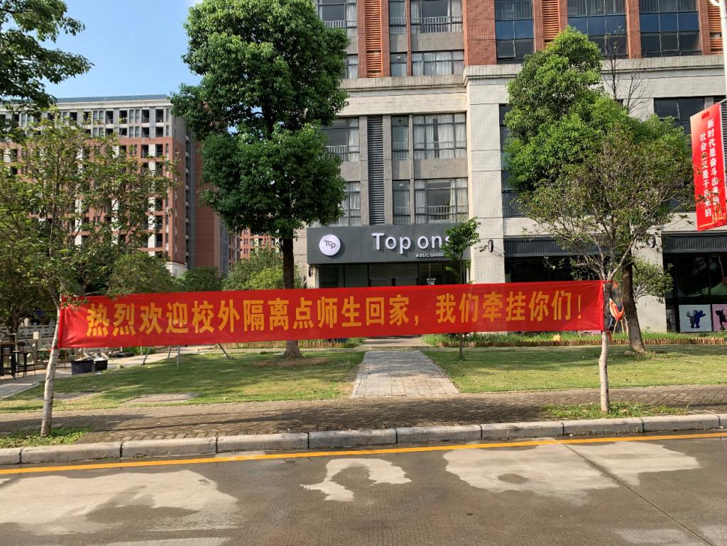 学校以及院系领导班子、辅导员等在校园欢迎校外各隔离点师生返校