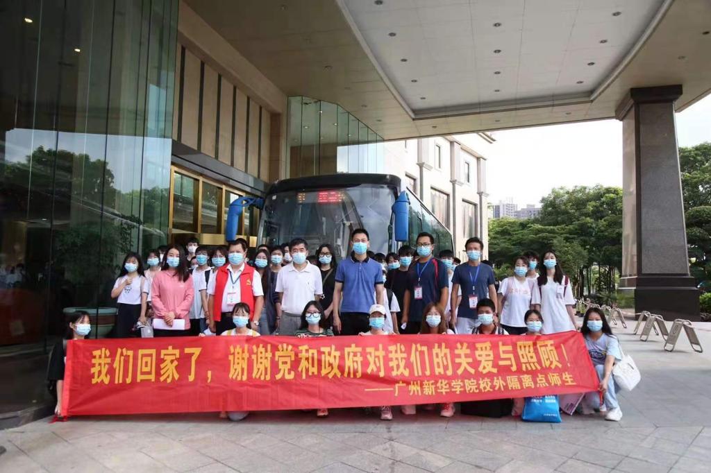 校外隔离点新华学子关爱团老师跟车将每一位学生平安送回新华园