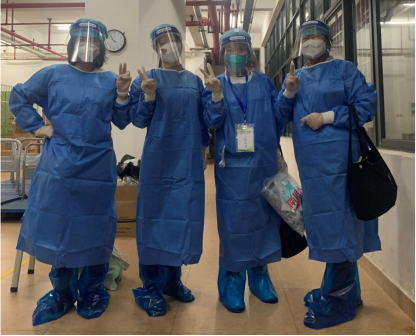 会计学院教师支援学生宿舍楼通宵守值(从左到右依次是杨洁、任蒙娜、张梦洮、李安兰)