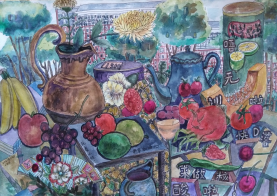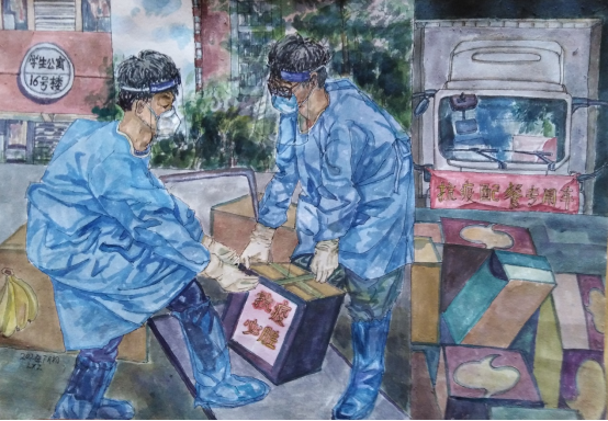 在这场抗疫过程中,学校得到了国家和校外各界人士的多方支援和鼓励,物资充足,我们所有的工作人员与学生都各就各位,亲力亲为,肩负起自己的责任,作品只是表达一个点,引人思考的是背后大家默默付出的努力与意义。