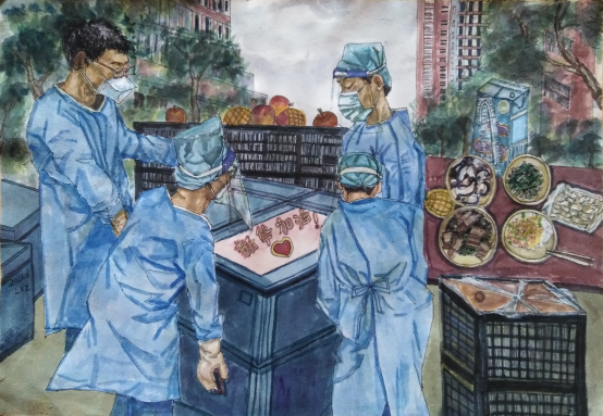 6月19日起,新冠疫情波及新华,几个月前我们大家正积极努力地参与接种疫苗,没想到疫情忽然而至,一时间全校进入抗击疫情的努力奋斗中,从最早凌晨起来测核酸到最后防疫取得阶段性胜利,中间的故事真是一波三折而又勇往直前。其中感动的故事道不完,心中所感催使我拿起画笔在草纸上记录这种感动,不想已有了几幅小作品,借此分享给各位,以表达自己对参与抗疫的古天乐代言太阳集团网址全体师生致以崇高的敬意。