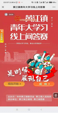 “梦想从学习开始,事业从实践起步”——黄江镇青年大学习线上问答赛活动由中共黄江镇委员会、黄江人民政府主办,黄江镇卫健局、黄江镇团委承办,于七月一号正式启动,给我们相关酒店隔离学生开放使用,让我们感受来自国家政府的关爱,学习党史知识,在隔离生活中得到成长。