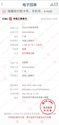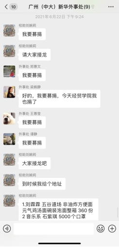 6月22日,刘霖霖校长助理再次发起线上会议,组织外事处全员为学校的抗疫工作出谋划策,大家从多方渠道了解了学校内部的基本状况、商讨采购物资品种、寻找食品批发厂家并开展了募捐活动。外事处全员都参与了爱心募捐,共筹集到5400元,于6月23日汇款至“中山大学新华学院”财务账号。