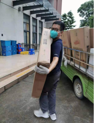 疫情来临,每个人的生活都被打乱了,没有人能够置身事外。我系齐留柱老师看到系里的志愿者招募信息,毅然加入了庞大的抗疫队伍中。他感触最深的是在疫情初期,相比物资,紧缺的是人手。搬运志愿者的工作压力很大,要一个场地接着一个称帝场地,一轮接着一轮地不停搬运。高温天气下搬运物资很是辛苦。和其他搬运物资的志愿者一样,齐老师二话不说就把物资扛起来,汗水湿透也毫无怨言。齐留柱老师认为,能把物资送到同学们和老师们的手中,解大家之所急,做这个工作的时候就会有一种强烈的意义感和获得感,正是这种意义感和获得感,支撑着他坚守在搬运岗位。他说:“新华学院的老师们,不但文能上课,武还能扛大包、‘送快递’,一专多能。”