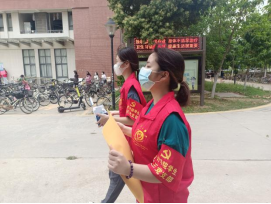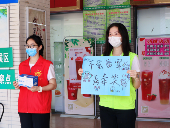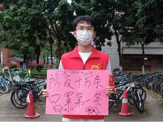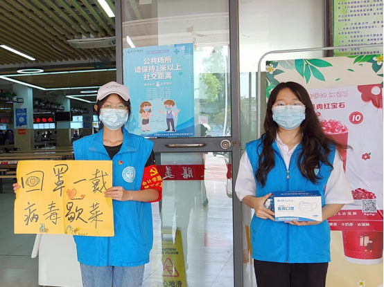 志愿者们听从指挥,分别在食堂、宿舍楼、校道路口等场所开展师生志愿服务活动。他们手持宣传标语,提醒师生员工务必佩戴好口罩,保持安全距离;对未遵守相关防疫要求的人员进行劝阻指正,并派发口罩。